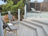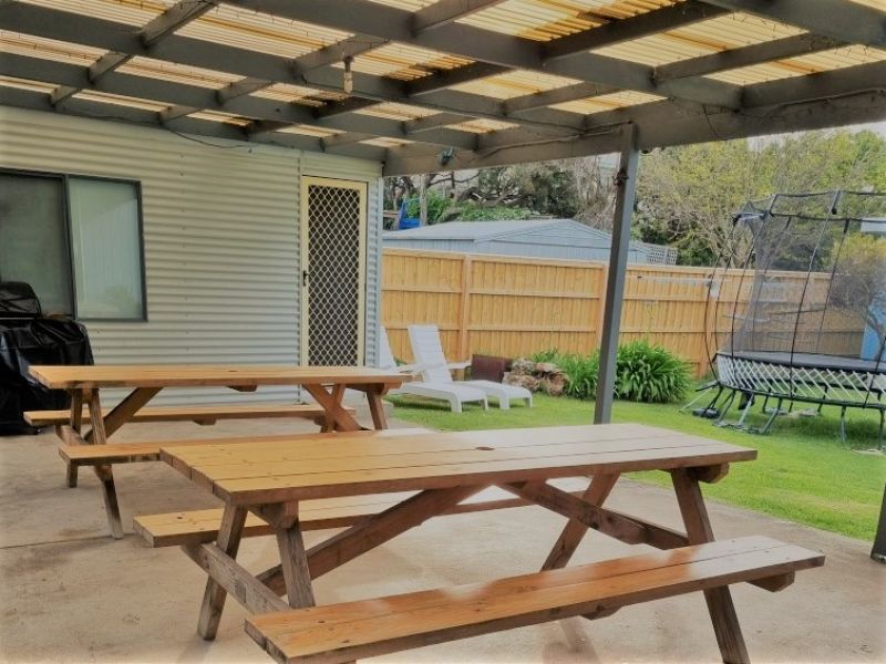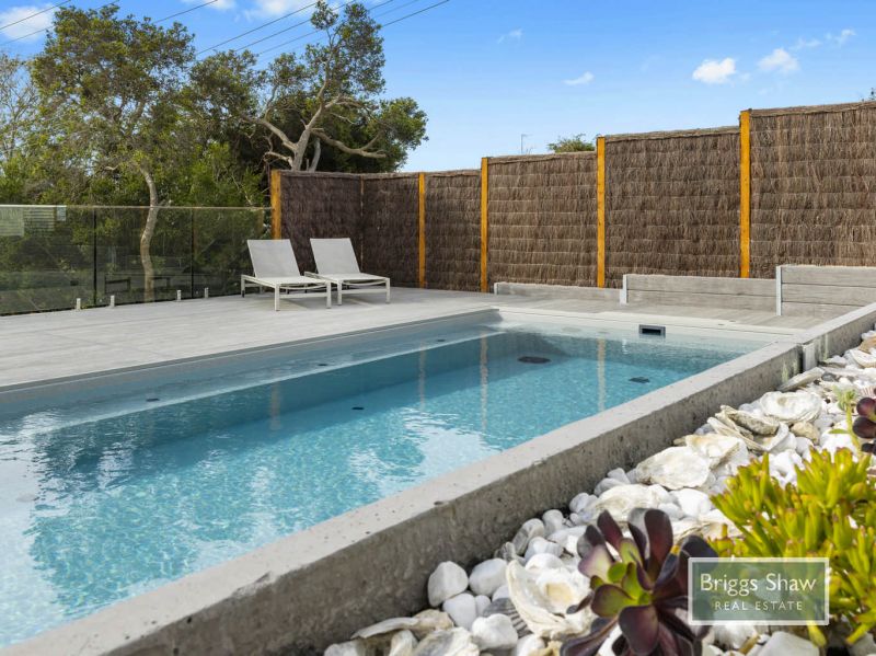 Complete with a brand new swimming pool, extensive decking surrounding the pool, three bedrooms (1 bathroom), open plan living and dining, Smart TV loaded with Netflix and Kayo, fully-stocked kitchen, alfresco entertaining with a trampoline & BBQ, and separate bungalow (set up as bedroom 4); this is the perfect beach house. House features include: high ceilings, handsome wood fireplace, hardwood timber floors, quality blinds, reverse cycle air conditioner, washing machine, dryer, dishwasher, big selection of books, board games and DVDs, abundant glass to invite in light and showcase gardens and separate bungalow great for the kids (complete with a springfree trampoline). Fully fenced & Pet enquiries Welcome.