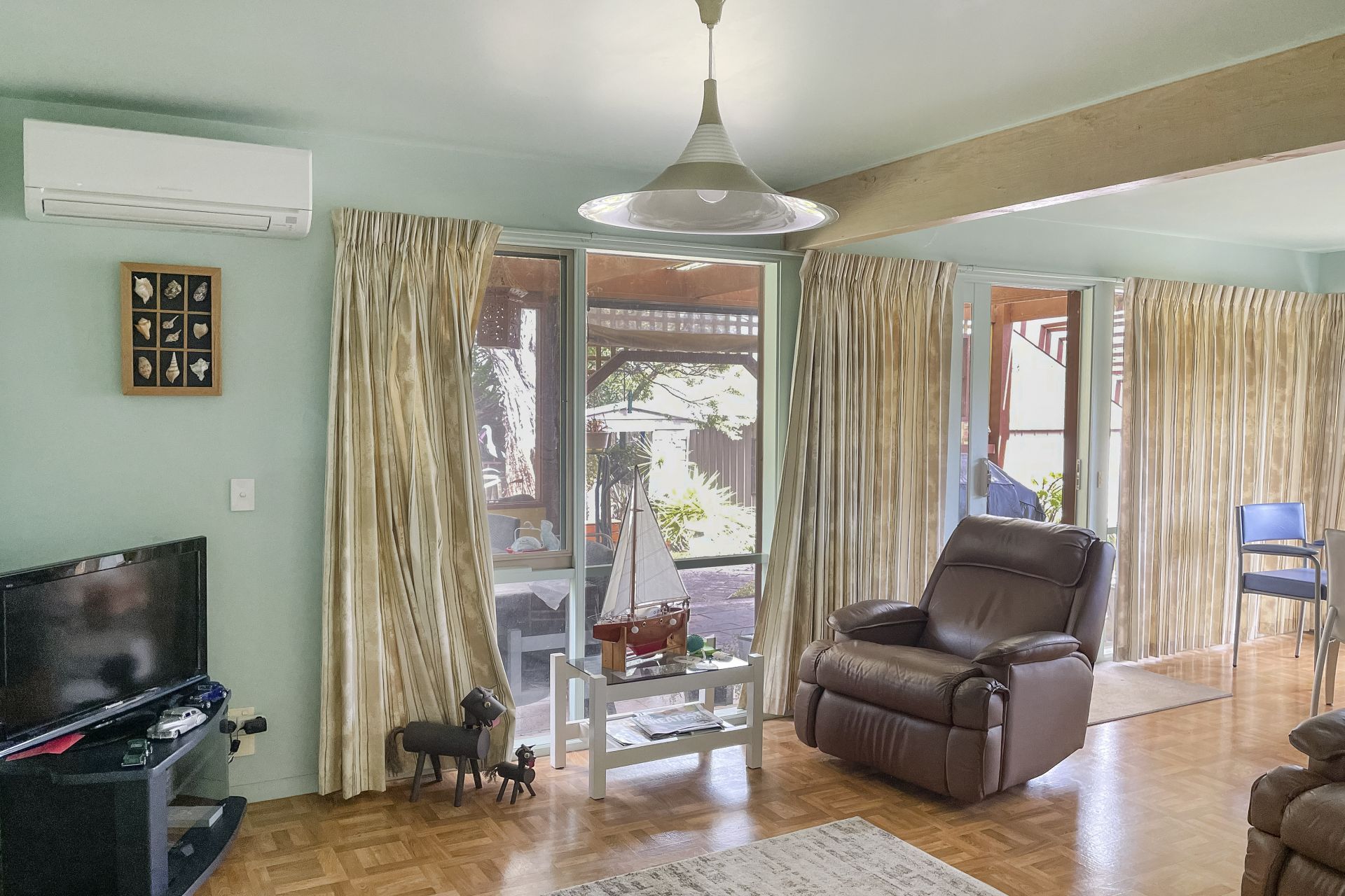 Inside the solid brick house, there are three bedrooms on one side with the master bedroom larger than average. On the other side there is the front lounge followed by the kitchen and dining area adjoined by a second, casual living area. Timber flooring, carpet in bedrooms, skylight in bathroom, large-format glazing around the building, centrally controlled electric wall heating panels, ceiling fan and air-conditioner, everything in the house is in great conditions and works in harmony to produce happy and comfortable living.