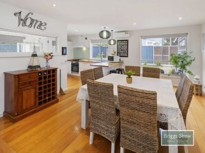 The modern kitchen with gas cooktop, electric oven and dishwasher and large dining area to entertain family and friends.