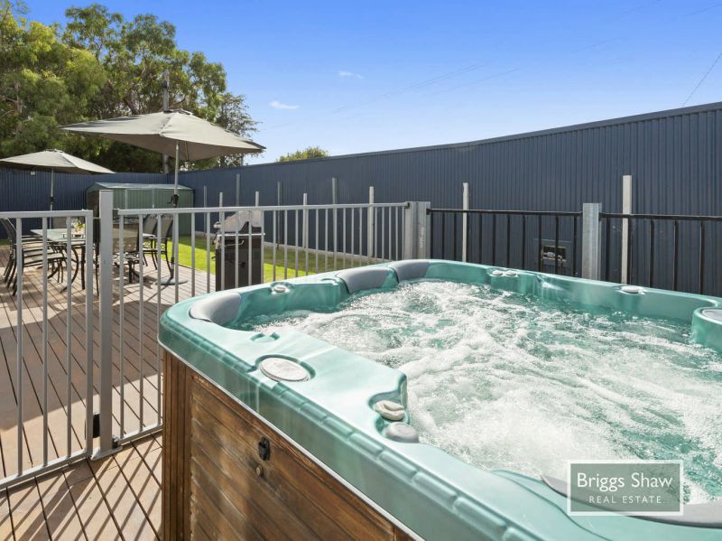 Continuing outside, there is a large decking with a spa to celebrate those special occasions.